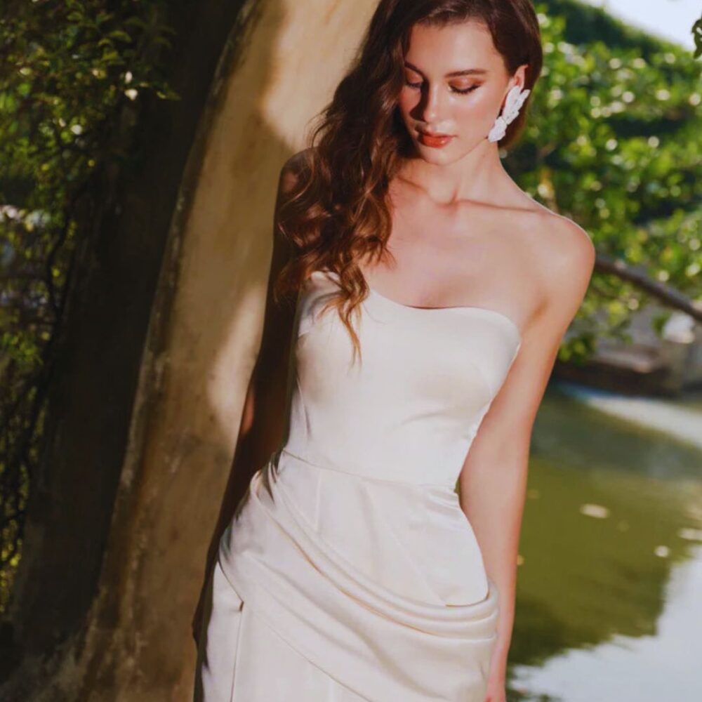 Ivory Strapless Draped Satin Evening Gown "Elysian Grace" DR572